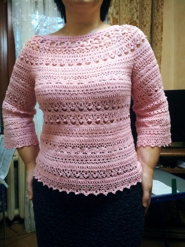 Ажурный нарядный джемпер, ручная работа, р. s-m