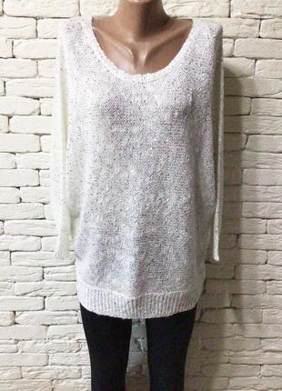 Джемпер, крій кажан, нитка з паєтками. В нитку додані паєтки. горловина з великим вирізом Виміри - горловина - ширина 26,5 див., ПОБ - 47 см потягнеться до 54 , довжина 66-67 см Склад - 72 % акрил, 28% поліестер Вказано розмір М , підійде і на більший розмір. Склад - 54 % акрил, 46 % поліестер Доставка: ПІСЛЯПЛАТИ НЕМАЄ. Оплата на карту Приватбанку. Відправка Новою поштою або Укрпоштою