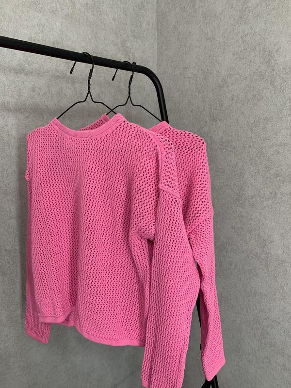 джемпер в сетку Нежный цвет Размер универсальный На ощупь очень приятная, заказывала в Турции Хотели открывать магазин, но не сложилась, поэтому Люблю закупатели, такой стоимости нет по магазинам Плечи 55см Под руками 58 Длина 55 Рукав по шву 48