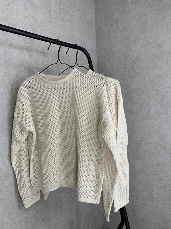 джемпер в сетку Нежный цвет Размер универсальный На ощупь очень приятная, заказывала в Турции Хотели открывать магазин, но не сложилась, поэтому Люблю закупатели, такой стоимости нет по магазинам Плечи 55см Под руками 58 Длина 55 Рукав по шву 48