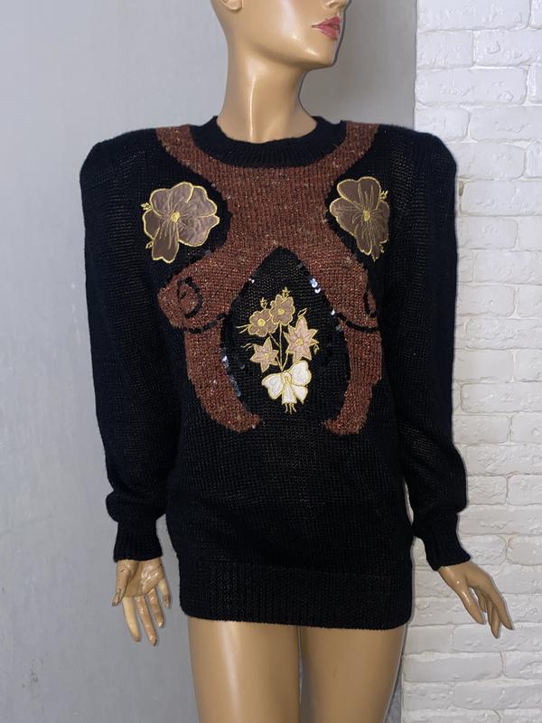 Винтажная кофта с аппликацией джемпер на плечах винтаж Progres, M. Длина 69см, рукав 64см, ПОг 50,5см, ПОБ 34-58см