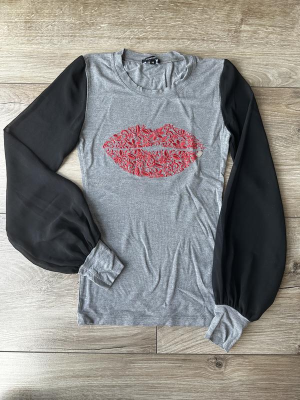 В идеальном состоянии. Наделась несколько раз. Прозрачно-черные рукава. Размер XS.