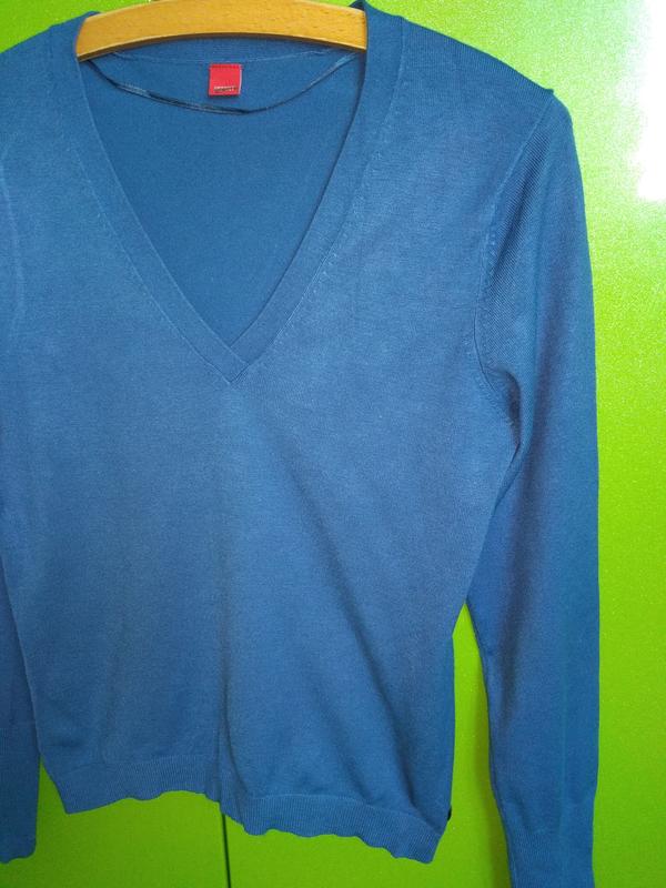 Кофта приятная на ощупь, необычный и стильный синий цвет. Длина 58 см, рукав от плечевого шва 61,5 см, полуОг 44 см.