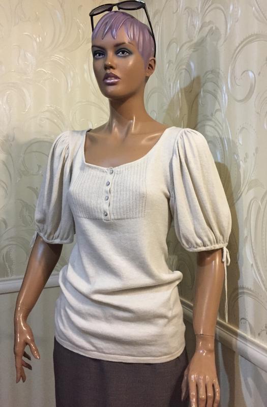 Джемпер з об'ємним рукавом на зав'язці по лікоть молочного (світло-бежевого) кольору, прямого, подовженого крою, груди декорована фактурної в'язкою і застібається на 4 гудзики. Бренд MANGO. Склад: 52% бавовна, 16% віскоза, 16% поліамід, 16% альпака (вовняний одяг з вовни альпака – це не лише теплий одяг, це, перш за все, знак якості, а також акцент на вишуканий смак і стиль. Модные дизайнеры, добавляя в свои произведения шерсть этого удивительного животного, делают шерстяную одежду более привлекательной, приятной на ощупь, особенно теплой и устойчивой при длительном ношении, которая совмещает в себе легкость и практичность, шарм и удивительную прочность). Размер М/L. Состояние идеальное. Замеры: плечи - 38 см., ПОГ - 41/50 см., ПОБ - 41/50 см., длина от плеча - 68 см., длина рукава: внешняя - 33 см., внутренняя - 11 см. Размер манекена S. Добро пожаловать в мой магазин. Известные бренды, отличное качество - доступные цены.
