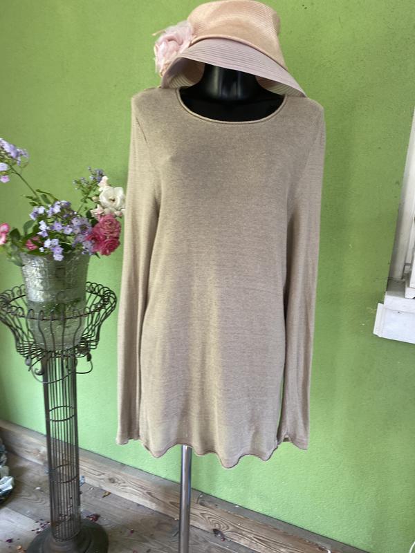 Удлиненный джемпер натурального некрасно цвета от Hugo Boss. Склад:льон-100/. Размер по набору-М. Замеры:длина-82 см, ПОГ-44 см, ПОБ-44 см, рукав-68 см.