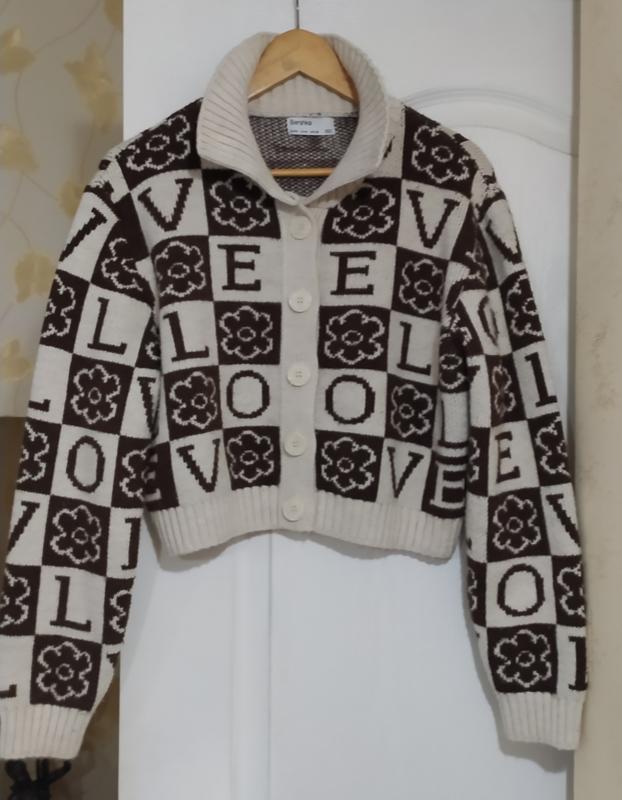 женская кофта кроп-топ,очень современная, умолодежная, оверсайз,укороченная, тёплая, мягкая, яркий принт. цвет бежевый с коричневым принтом. Турция. замеры:плечо 13,длина рукава 61,пройма рукава 25, полуобхват под рукавами 56, полуобхват низ в спокойном состоянии 46(+), длина 46.