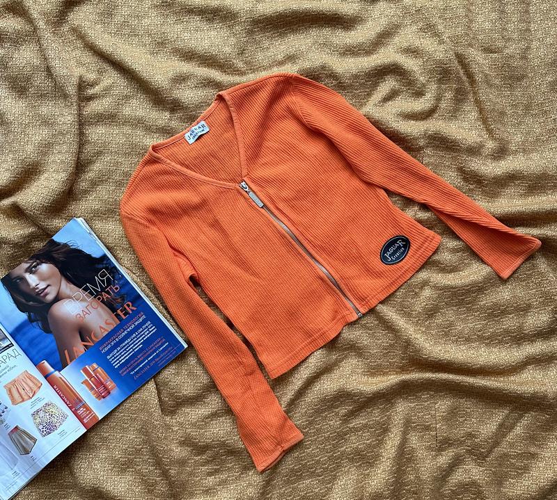 Гарна яскрава кофта в рубчик помаранчевого кольору на блискавку/ Подойдет на xs s m европейский ориентируйтесь по замерам/ Длина 44 см/ Плечи 40 см/ Рукав 52 см/ Пог 41 см/ Пот 38-39 см/ Знизу 39-40 см/ Продается без возврата/