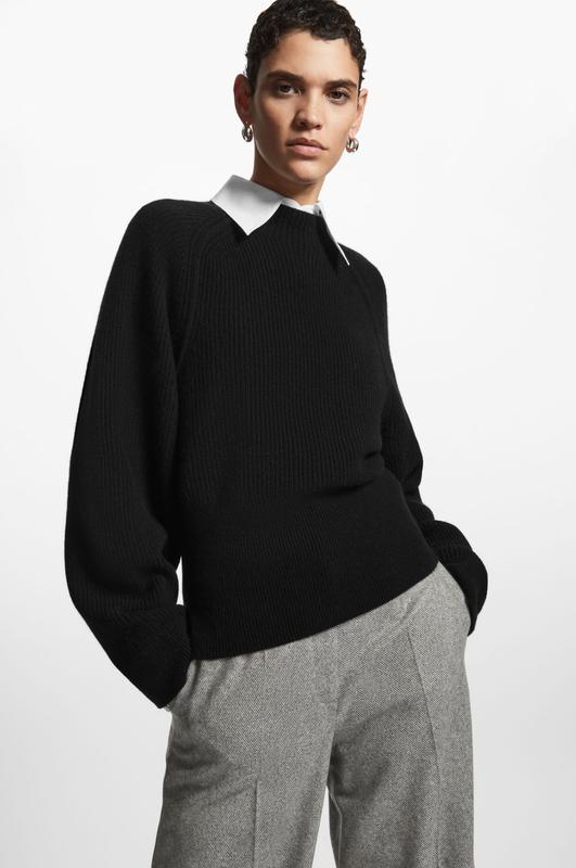 Склад: 70% вовна, 30% кашемір м’який на дотик джемпер виготовлений із суміші вовни та кашеміру має широкий ребристий край, який створює силует на талії збільшені рукави-балончики звичайна посадка трикотаж в рубчик