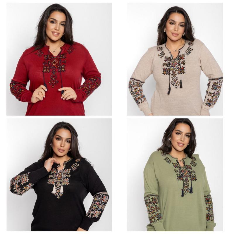 ❗️❗️❗️ЗНОВУ У НАЯВНОСТІ ❗️❗️❗️ 🙈🙈🙈 У НОВИХ КОЛЬОРАХ 🙈🙈🙈 Джемпер вишиванка батал🍓 🧵Тканина: вовна/акрил 30/70 ❌Размеры: универсальный (52-58рр) ❌Замеры: ПОГ: 57-59см; длина рукава - 63 см; длина изделия - 69см. 🇹🇷Производитель: Турция 🌈Цвет: как на фото 💵Цена 640 грн Globa