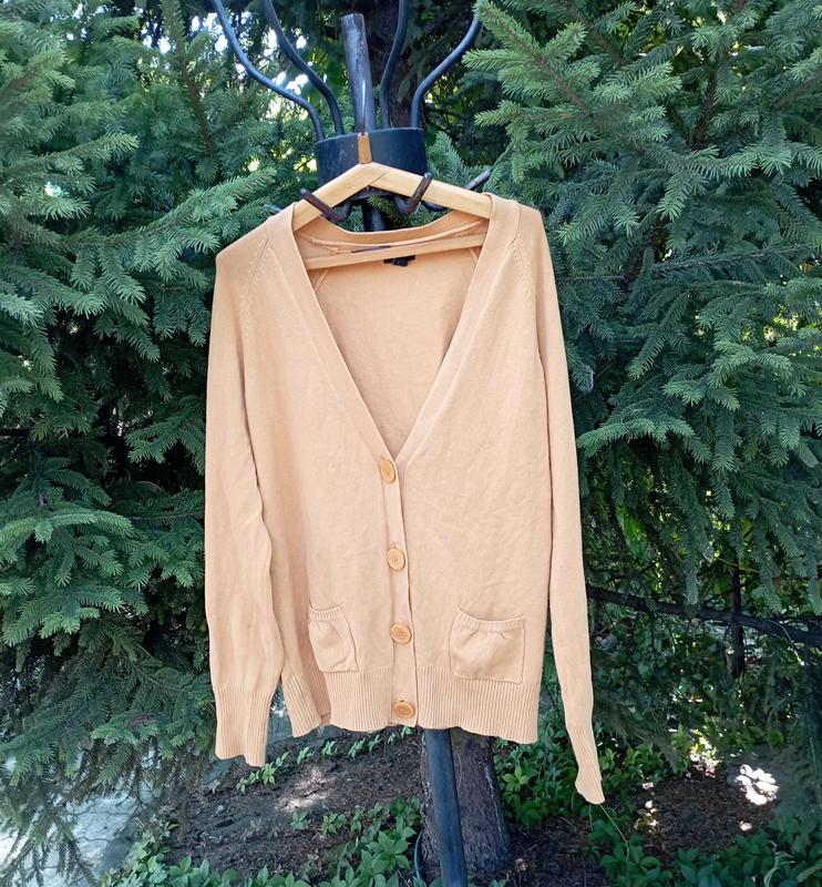 В хорошем состоянии, без дефектов 94% котон, 45% полиамид, 15% эластин Цвет между жёлтым и горчичным, не ядовитый жёлтый Полуобхват груди 50-60 см Длина 64-69 см Есть запасная пуговичка
