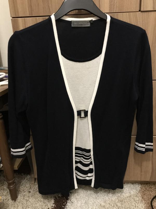 Кофта BPC . Ни разу не надевалась. Размер 40/42. Общая длина 67.5 см. Рукав 3/4. Длина рукава 45 см. Грудь полуобхват 50 см. Талия 46 см полуобхват. Длина от плеча до шеи 13 см.