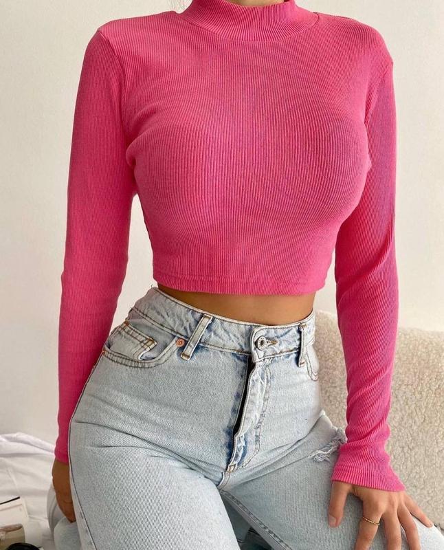 ➖кроп-топ с длинным рукавом и комирцем. ➖арт.301. Цена: 540 грн ➖материал - рубчик. ➖приятный к телу, идеально садится по фигуре. ➖качество и пошив 🔝 ➖размер - 42-44, 46-48. ➖цвета - барби.