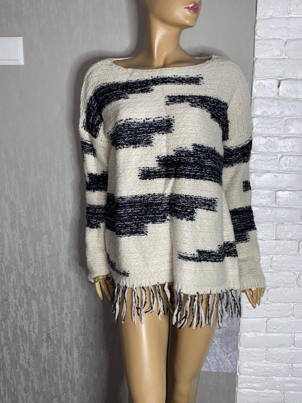 Кофта оверсайз с бахромой джемпер с мохером Review, M. Длина 64, с бахромой 73, рукав 49/69,5, ПОГ 57, ПОБ 58