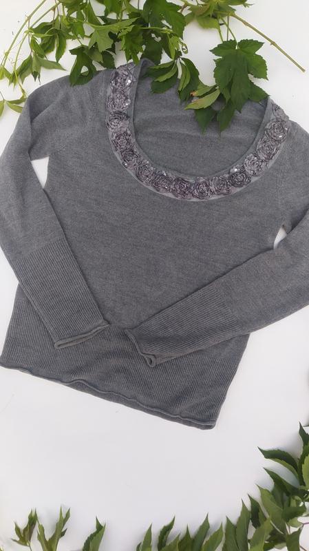 Отличный мягкий свитер, по горловине украшен розами. Шалено приятный к телу,идеальное состояние. Размер указан m, смотрите замеры. Длина 59 см,рукав 60 см, по плечам 36 см, от подмышки до подмышки 43 см, по низу 40 см