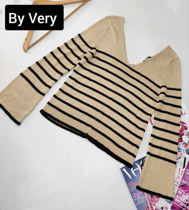 Джемпер женского бежевого цвета в черную полоску от бренда v by very 16