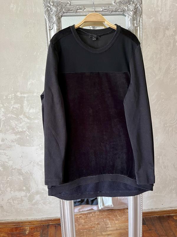 Подовжений джемпер з поєднанням велюру ,сіточки і трикотажу ,є катинці на вставці з трикотажу;колір чорний;заміри: