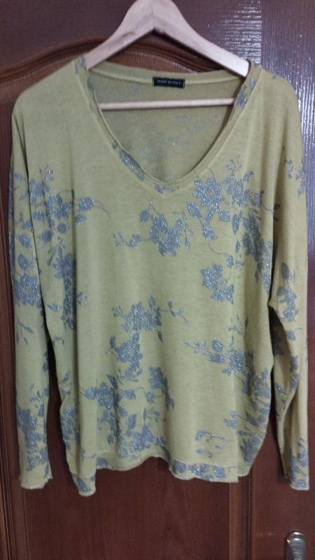 стильнu kий джемпер Италья, нежнейший желтый колir с поденением срибла делает непревзойденный образ, 50-52 размер, на 54 размер мжно также, камера не переда колir, нежно желтый зi сriблястными вставками
