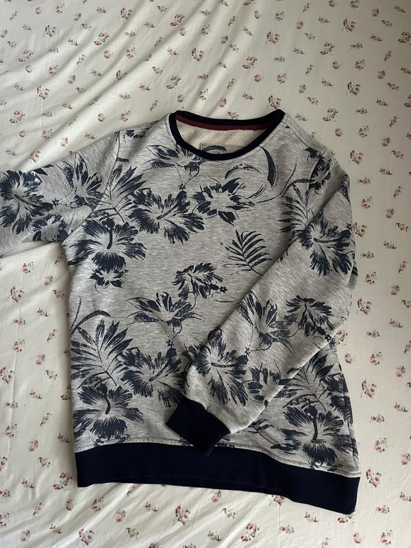 Сіро синя кофта з квітковим принтом, one size (S), бавовна, осінь/весна