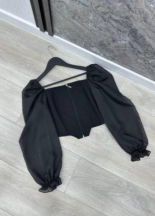 Фото наживо 💥 Кофточка Цена: 600 грн 🎁 🔹️Модель: 193 🔹️Ткань: креп-дайвинг + шифон 🔹️Размеры: 42-44, 46-48 🔹️Цвета: белый, черный Замеры: 42-44 Объем груди: 80-90 см 46-48 Объем груди: 88-98 см Длина по переду изделия: 34 см Длина рукава: 62 см донц
