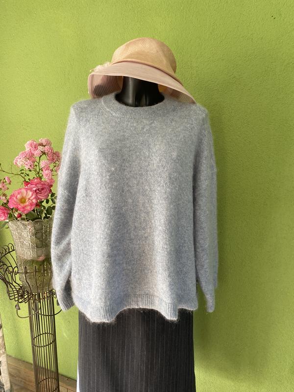 Шикарный теплый джемпер оверсайз от H&M. Состав: шерсть/мохер/полиэстер/эластан(32/32/33/3). Роскошный широкий рукав-3/4. Размер по набору-L. Замвры:длина-64 см, ПОГ-65 см, ПОБ-67 см, рукав-3/4. Цвет - голубой