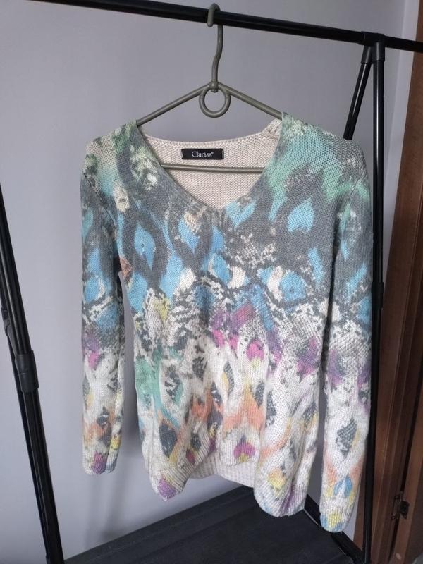 Продам яркий пуловер, принт несколько напоминает змеиный. Теплий, стан хороший. Размер M-L.