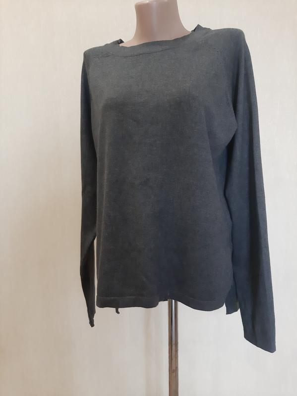 Джемпер прямого силуэта, выдержанного стиля, красивого темно-серого цвета. Грудь 54 см, длина рукава по внутреннему шву 56 см, длина по переду 62 см, спина на 7 см длиннее. Состав 40% вискоза, 30% коттон, 30% полиамид. Оплата 100% на карту. Обмена и возврата нет. Отвечу на все вопросы.