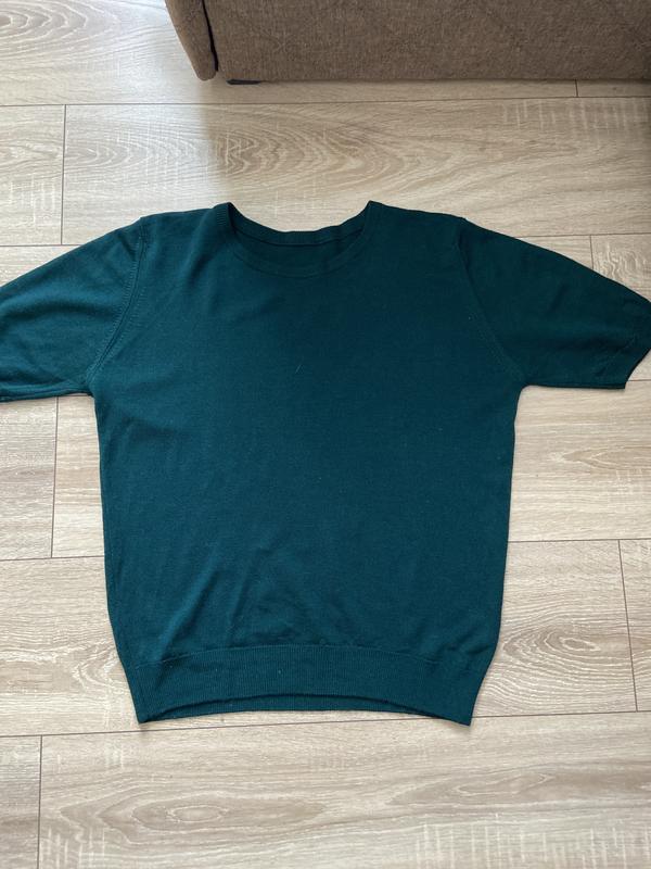 Джемпер ( футболка) с коротким рукавом, из высококачественной шерсти, мягкая. , не колючая, цвет зумрудный, плечи 44, пог 52, длина 60, состояние идеально