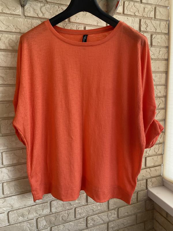 Продам яркую кофточку в коралловом цвете. Указан размер S но более подойдет на МС -идеальный Замеры: Длина-62 От воротника до рукава-40 Ширина по низу-51