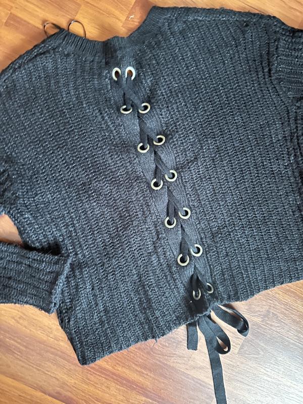Мягенький, не Калый. Оригинальная спинка-завязывающаяся не тесьма. Длж-47см Ног-50см К низу прямой, можно регулировать завязками по спике Плечо спущенное,рукав от горловины-72см