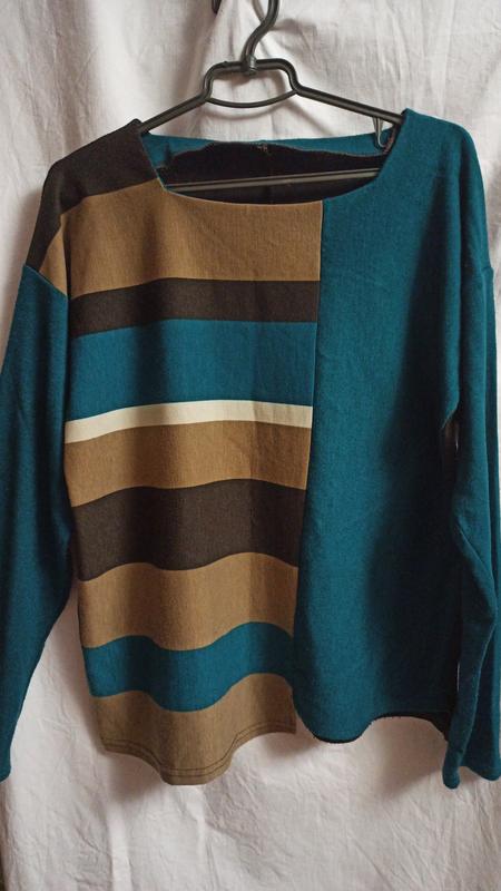 Кофта комбинированного цвета, вырез - неглубокое каре, рукав спущен. Ширина под рукавами 51 см, длина 60 мы, длина рукава от выреза 68 см. Продажа по полной оплапе на карту.