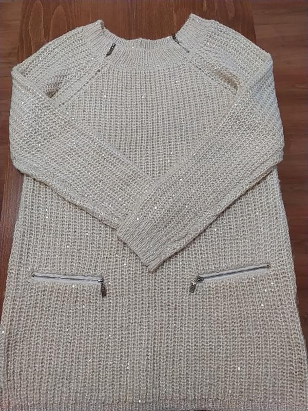 шикарный вязаный с пайетками женский джемпер:длин.70см,н/о 50см,рукав 64см,горловина 4см