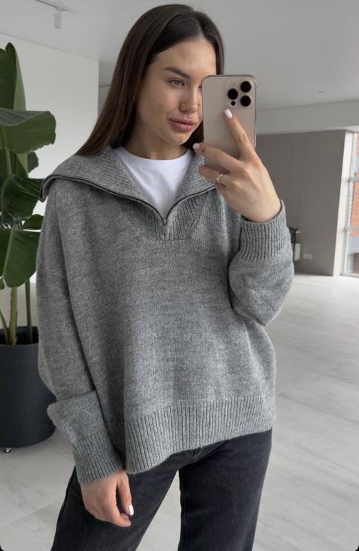 Обʼємна посадка (ширина під пахвами 67см, ширина знизу близько 51см, довжина по спинці 60см), високий комір на блискавці Розмір універсальний 42-46 Колір сірий меланж Повний розпродаж