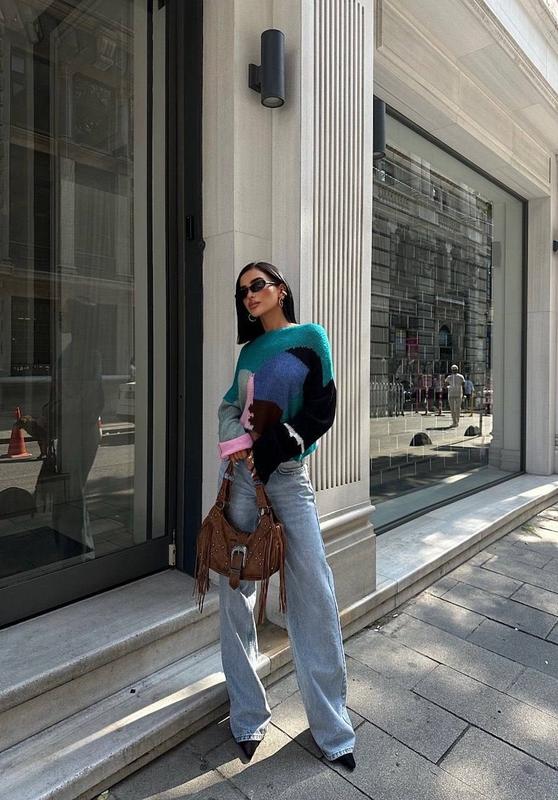 Яркий джемпер в трикотажу. Модель представлена с круглой горловиной и длинным рукавом. Сочетайте с широкими трендовыми джинсами или брюками-палаццо.