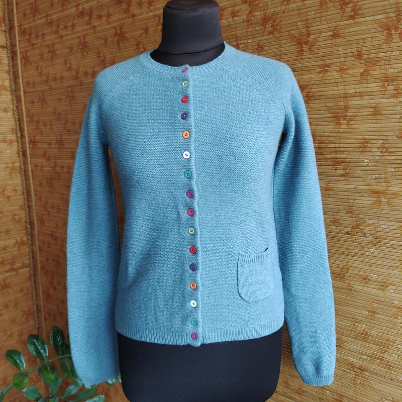 Новая кофточка Ken из экстра тонкой мериносовой шерсти Состояние- Новый, но бумажной этикетки нет Размер- S ЗАМІРИ: НОГ-45СМ НОБ-45СМ Длина рукава от горловины -75см Длина кофточки-55см