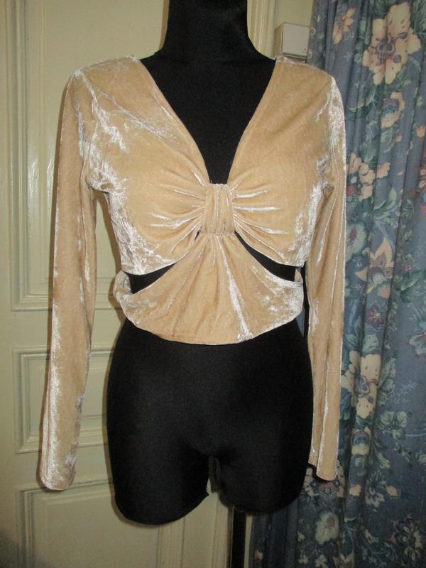 кофта бархатная.бежевого цвета.полиэстер.ПОГ 48.длина 45.длина рукава 62см.стрейч