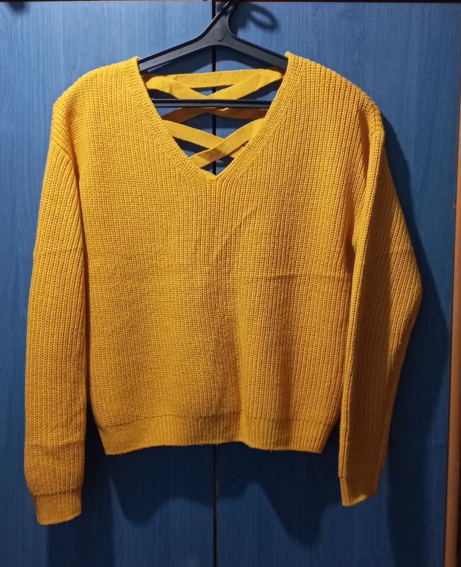 джемпер с шнуровкой на спине. бирка со смыслом ткани отрезанная, акрил. замеры: плечи спущенные 52см, под подмышками 52см, ширина резинки по низу 45см, длина рукава 53см