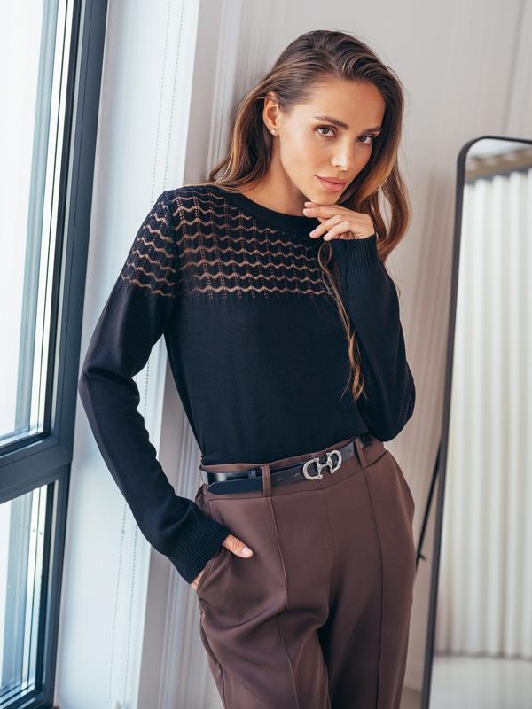 🍂Укороченный джемпер из высококачественного турецкого материала. Изделие мелкой вязки с перфорацией по полочке и плечам. Горловина, манжеты и низ связаны резинкой. ✔Размер универсальный:44-48 🪡длина изделия – 51 см 🪡длина рукава – 60/67 см 🪡Объем груди-до 106см 🍂Состав: 50% хлопок, 50% акрил 🌈Цвет: Молочный, черный, пудровый 🍂Материал: Акрил с хлопком 💰Цена 1090грн Арт:901596 ‼️Для заказа и детальной информации ndем в дырект 🙌