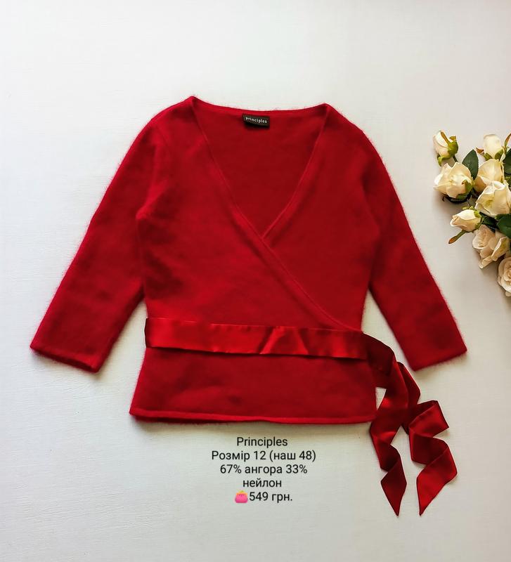 Кофта на запах ангора от Principles. Размер 12 (наш 48). Склад: 67% ангора 33% нейлон. Замеры: длина по спинке 56 см, ПОГ 48 см, ПОТ 43 см, ПОБ 48 см, плечо 8 см, длина рукава 46 см. Состояние новое.