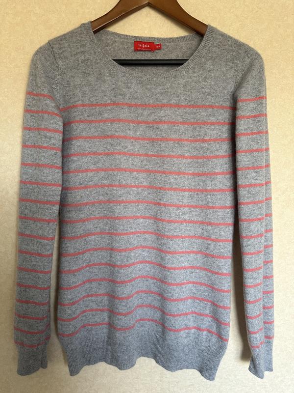 Нежная кофточка из 100%кашемира свтлодерного цвета в контрасна (коралловую) полоску. Стан идеален, без нюансов. Размер 36/38.