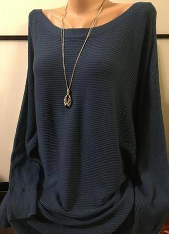 Указан размер L (12 Uk), подойдет и на большее. Длина 72 см Полуобхват груди 60 см, свободно переходит в реглан. Низ, по резинке 45 см, хорошо тянется.