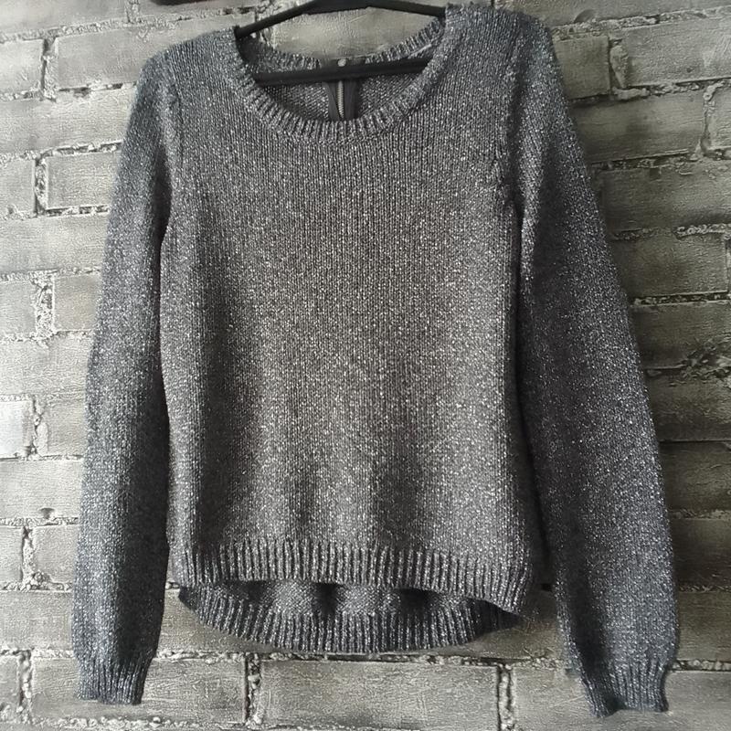 в реале лучше видна нить под серебро. не жёсткий. разрезы внизу по боковым швам. разновеликая длина. длина в висячем положении - спереди 57 см, сзади 62 см. рукав в висячем положении - 66см бирки срезаны. состояние - очень хорошее. на последних двух фото (если нужно/появится идея носить вместе ) - в сочетании с эластичной серебристой юбкой dorothy perking ...на мой взгляд лучше не надо их вместе))