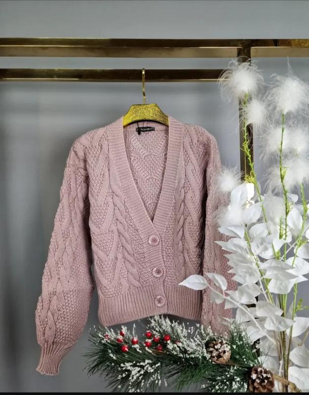 Модная и комфортная укороченная кофта на пуговицах. Вырез горловины V-образной формы. Кофта с длинными объемными рукавами. Приятный к телу материал и качественный пошив. Без принтов и декора. Есть стильный вязаный узор на самой ткани. Модная и удобная вещь для повседневной носки на прохладное время года. Стан идеален, без дефектов. Размер: один 40-44