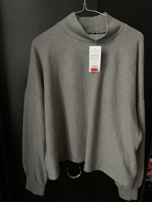 Сіра нова дуже мягенька кофта з опущеними рукавами. Довжина -58 см, ПОГ -65см