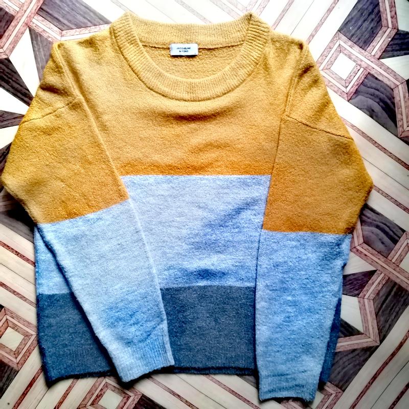 В хорошем состоянии. Мягкий. Теплый. Не толстый. Пог 55 пот 53. Пос 53. Тянется. Рукав от шеи 69. Длина 57. Размер М. Состав : 74% акрил, 20% нейлон, 6% эластан.