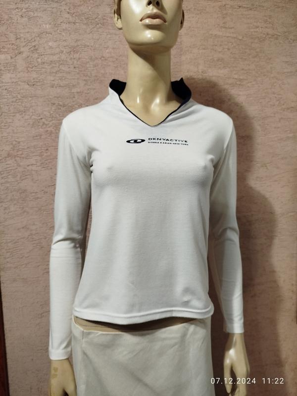 Качественный фирменный джемпер DKNY белого цвета в отличном состоянии. Длина изделия по спинке от плеча 50 см, полуобхват груди 42 см, длина рукава 53 см. Ткань тянется. Модель 5452