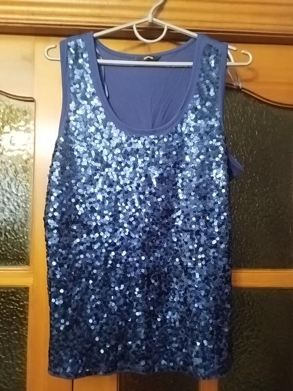 Модная женская кофта с пайетками. Синего цвета. Размер 48-50