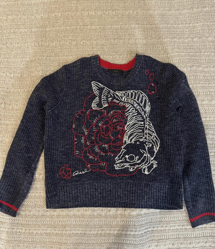 Кофта, вязаная из толстой хлопковой нити. Не кашлатится, держит всегда форму.