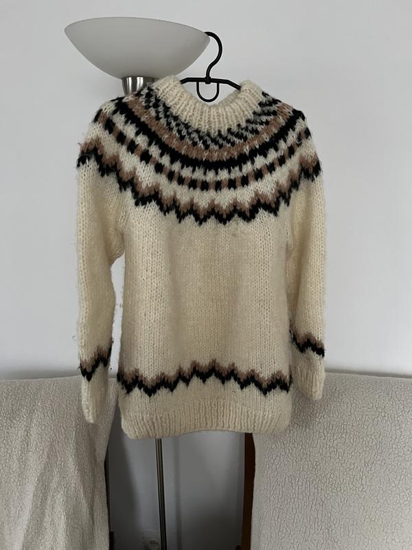 Длина-70, рукав-реглан-67, полуобхват груди-47, талии-50, бедер-48, натуральная мериносная шерсть не кусающая, ручная вязка.