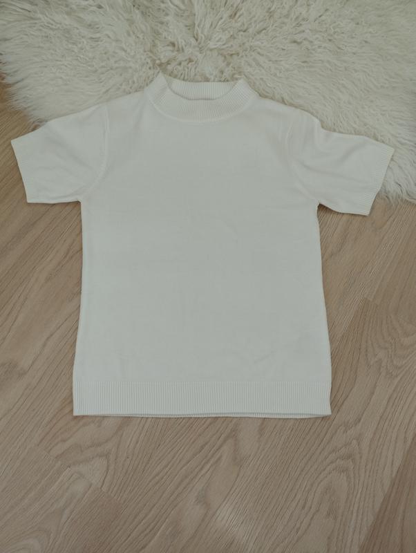 Біла кофтинка 38-40 в ідеальному стані, тканина дуже приємна до тіла, короткий рукав, шия на стійці, ПОГ 52, довжина 65