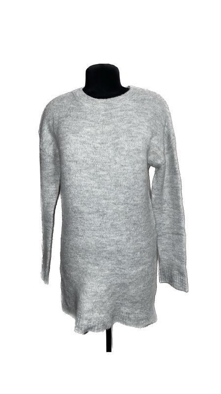 Стильная и теплая удлиненная кофта с вырезами по бокам. Состав ткани: 58% акрил, 25% нейлон, 12% шерсть, 3% полиэстер, 2% эластан. Замеры: длина изделия: 76 см, полуобхват груди: 50 см.